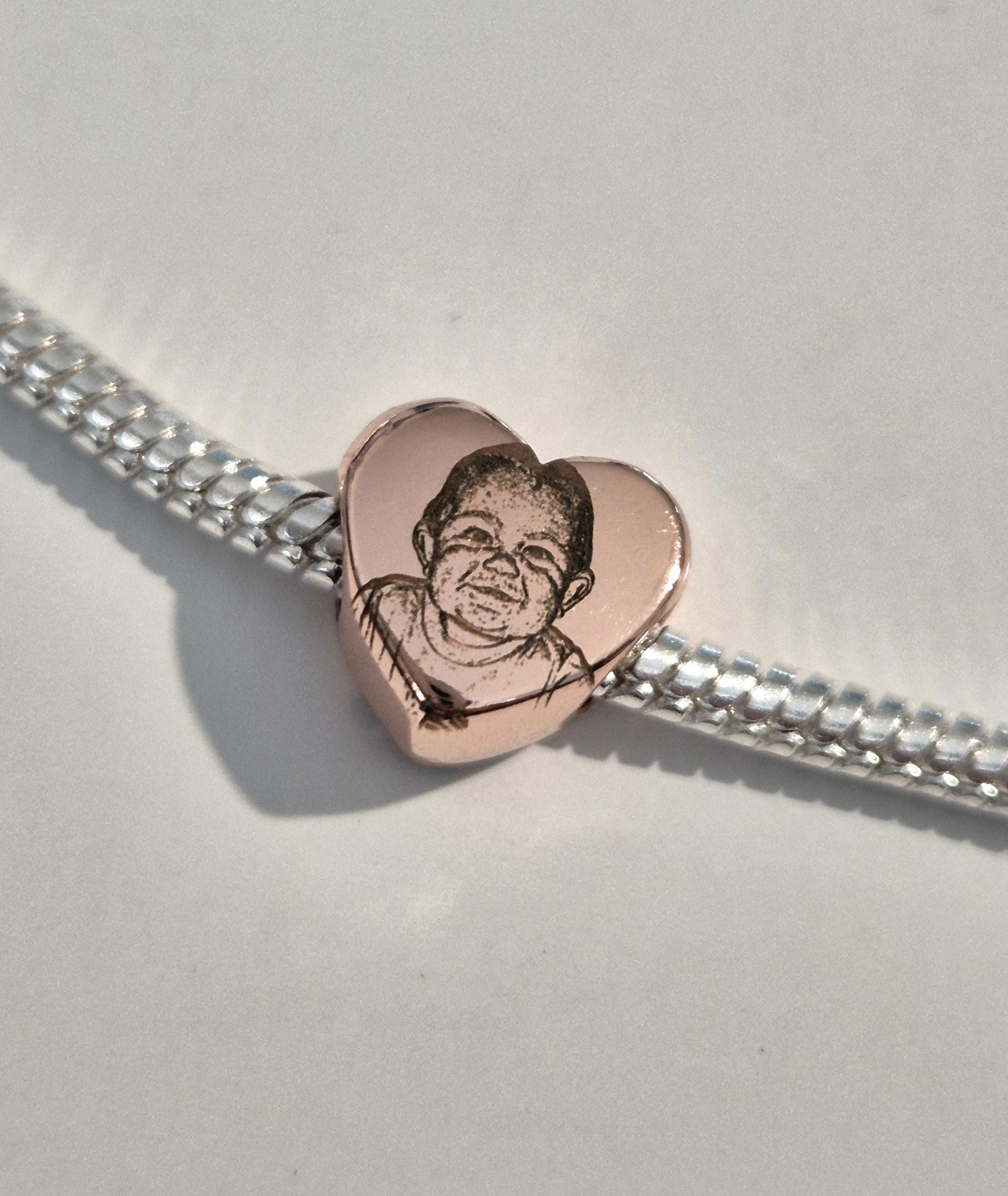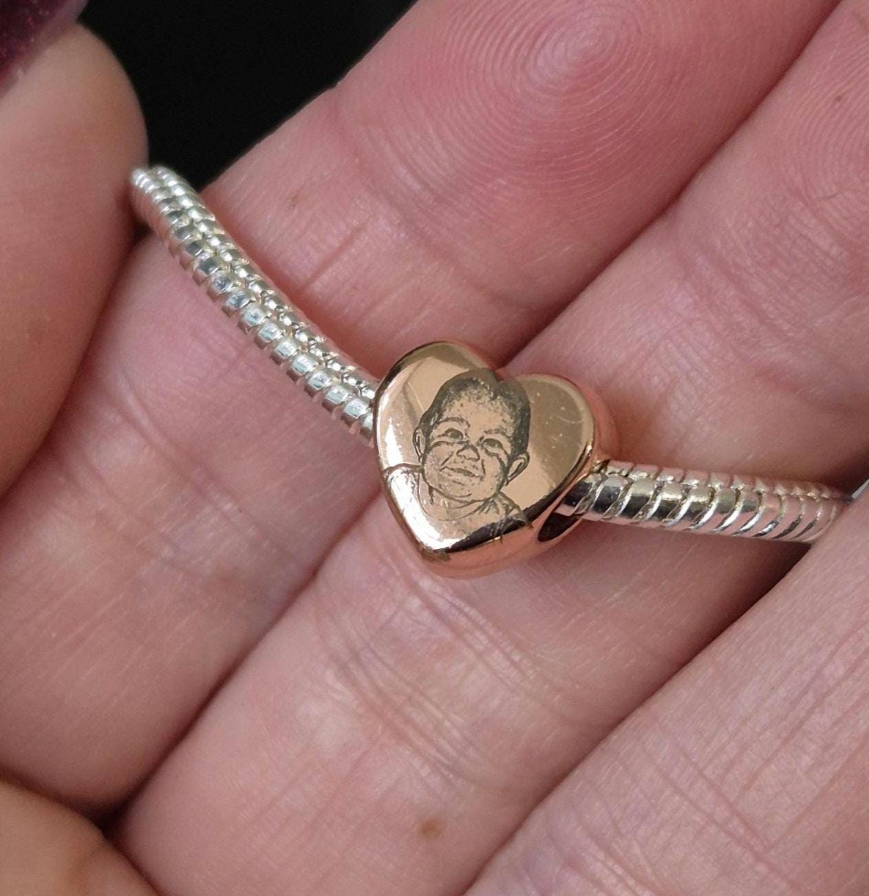 Personalised Rose Gold Pandora Style Charm – 10mm Engraved Bead with Photo, Paw Print or Text – Custom Keepsake Jewellery Gift (fit pandora)