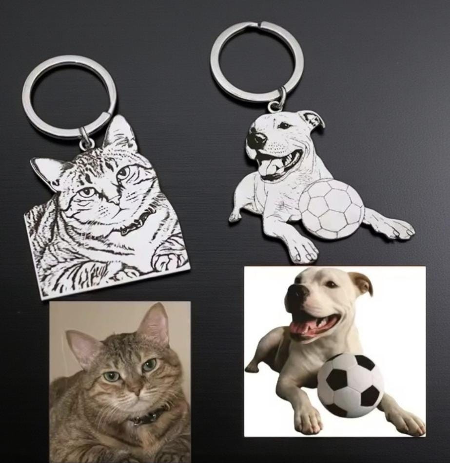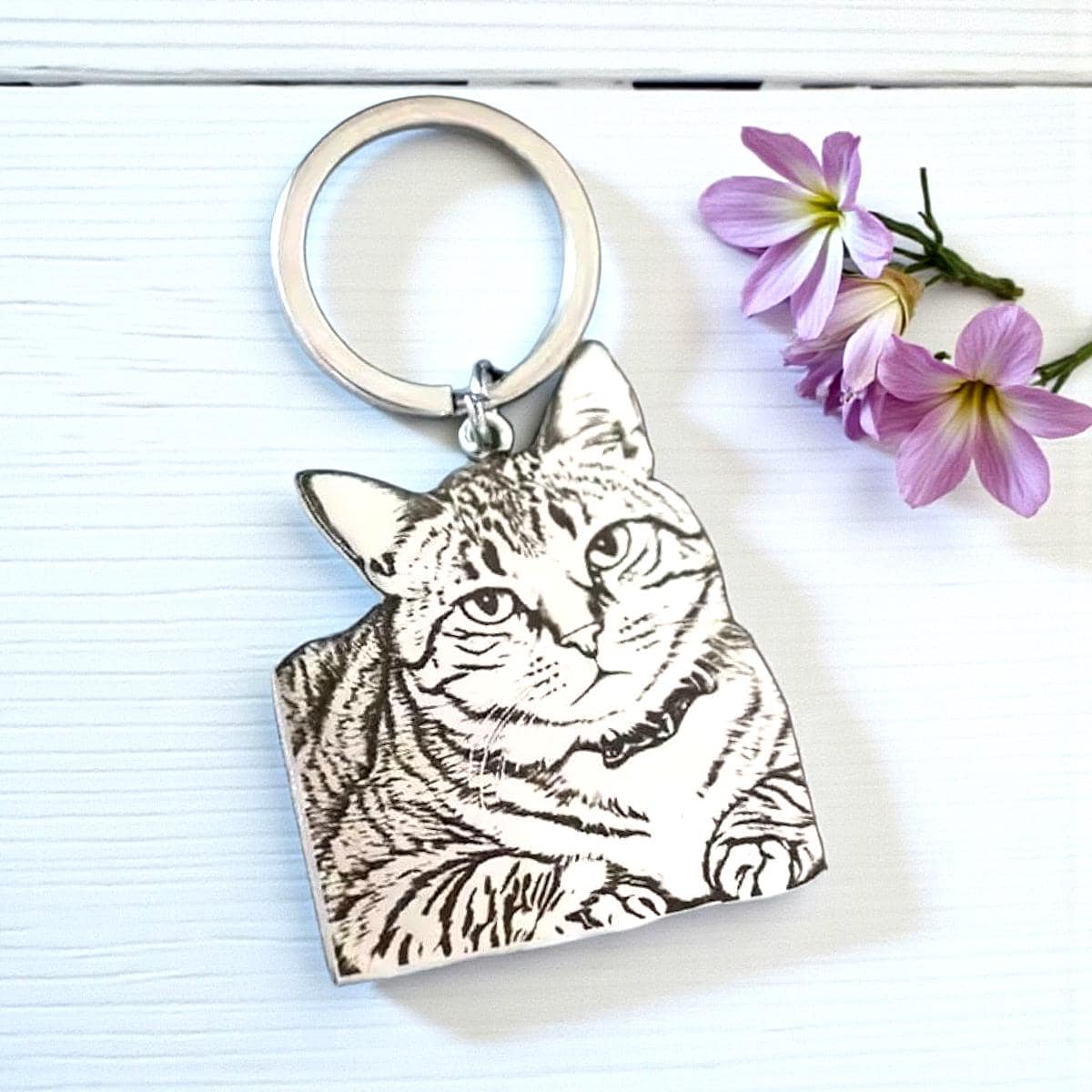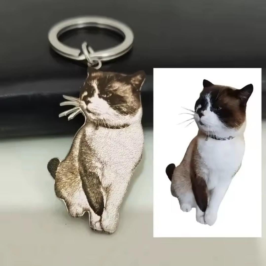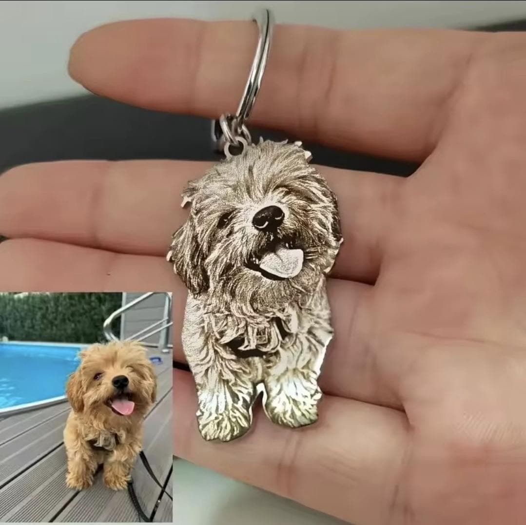 Actual photo laser cut keyring, from any photo. DOG, CAT, HUMANS. Memorial gift, family gift, Engraved keyring.