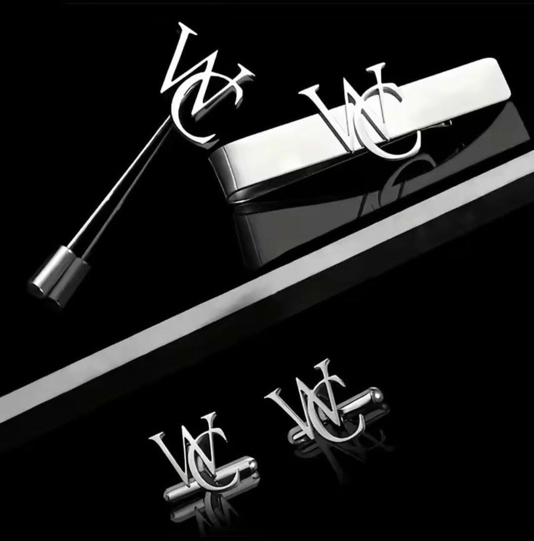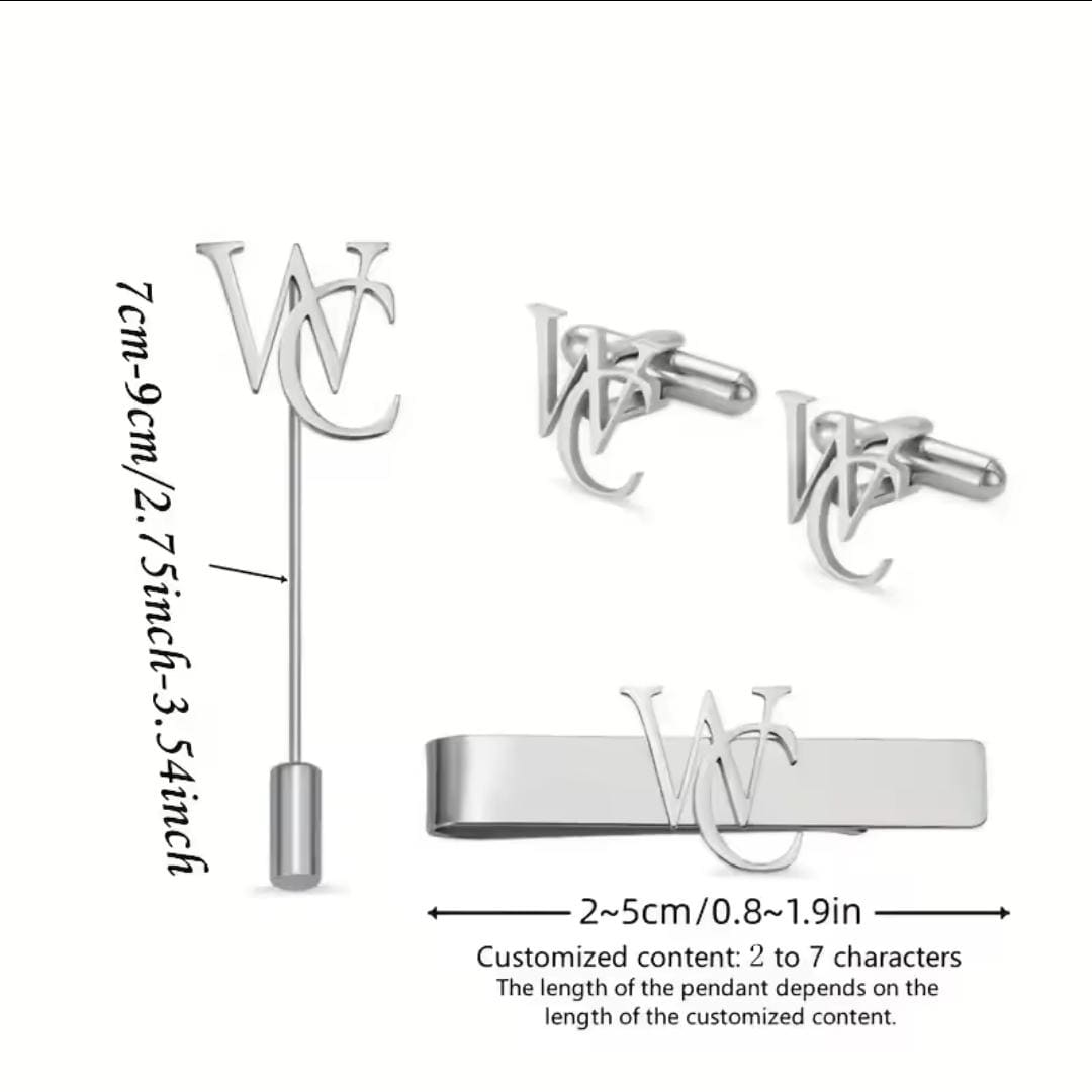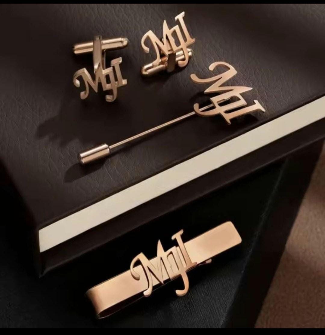 ✨ Personalised Monogram Men’s Gift Set – Cufflinks, Tie Clip & Lapel Pin ✨