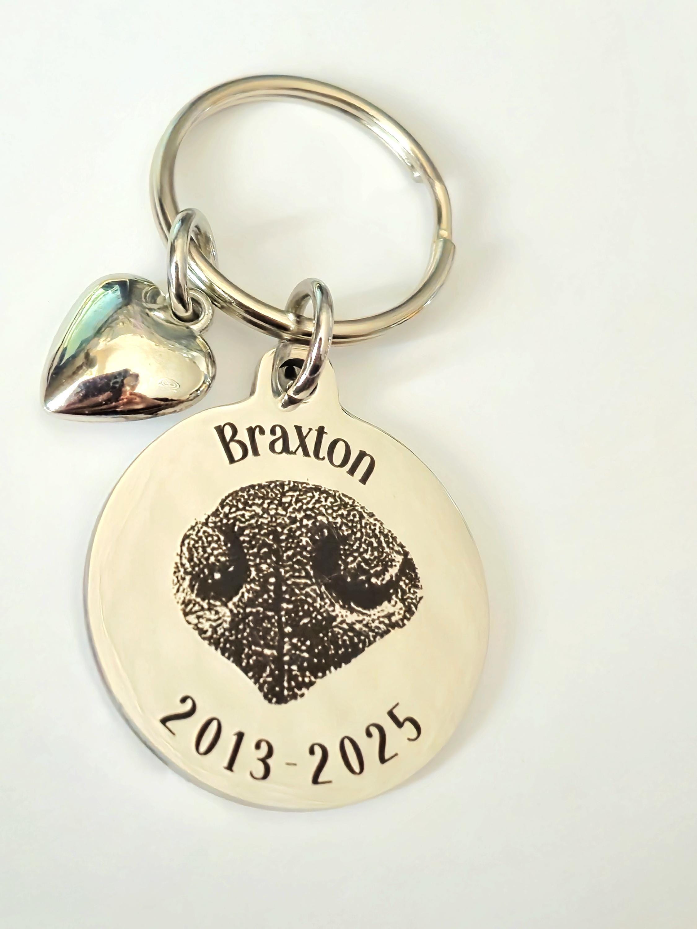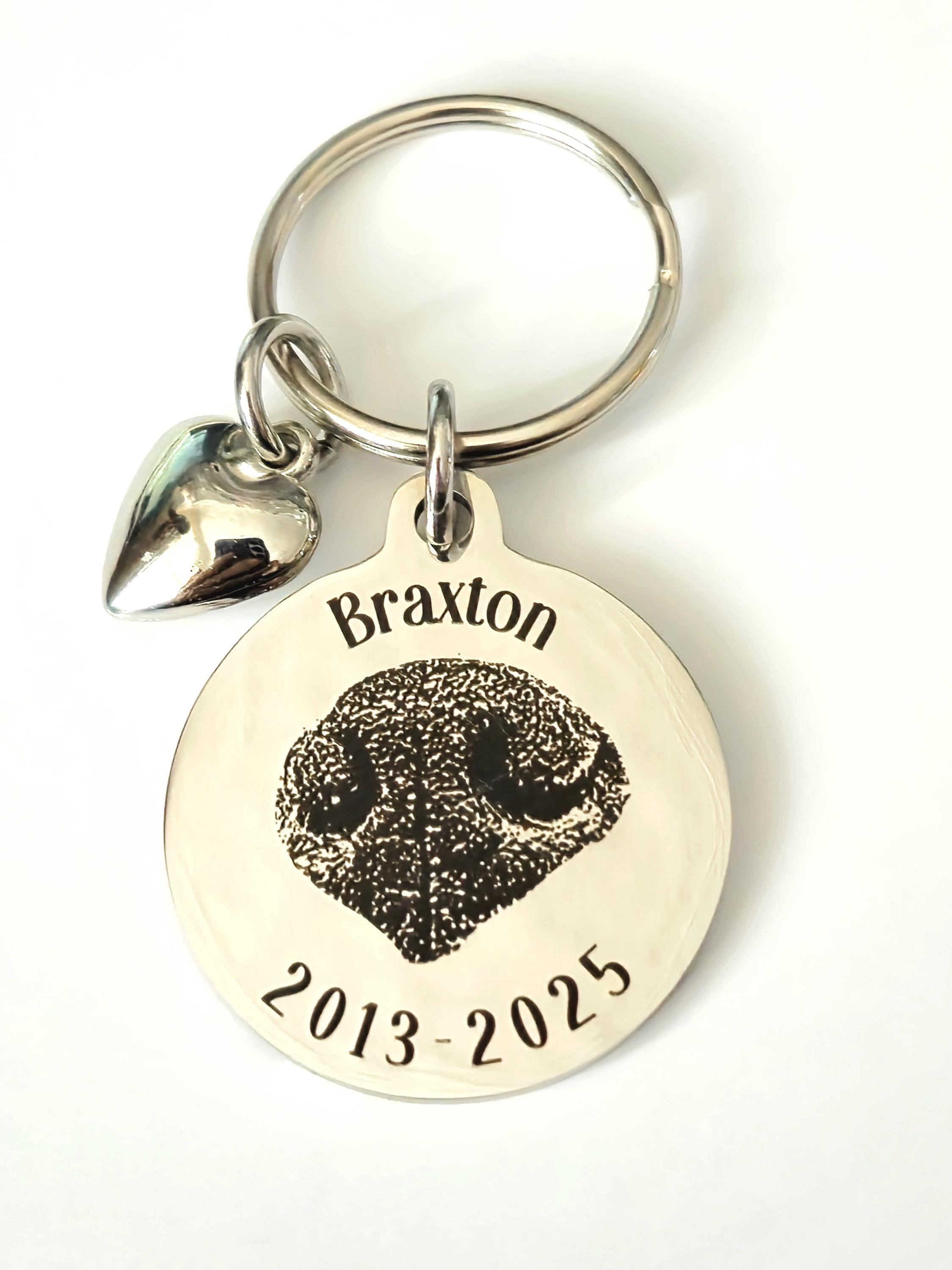 These can be done using any clear photo of your puppers nose, the better the pixels on the photo the better the engraving will turn out. You are welcome to send us a few different photos to see which would turn out best.